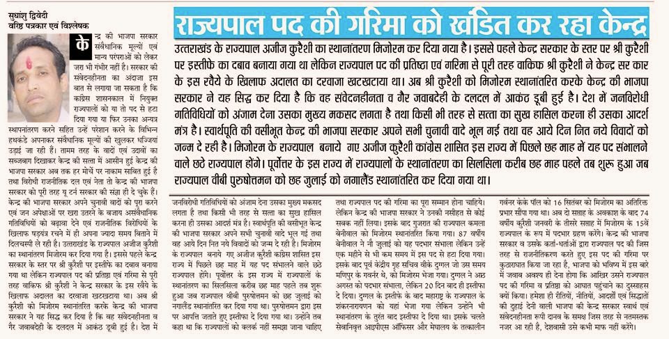 दबंग दुनिया समाचार पत्र में प्रकाशित मेरा लेख